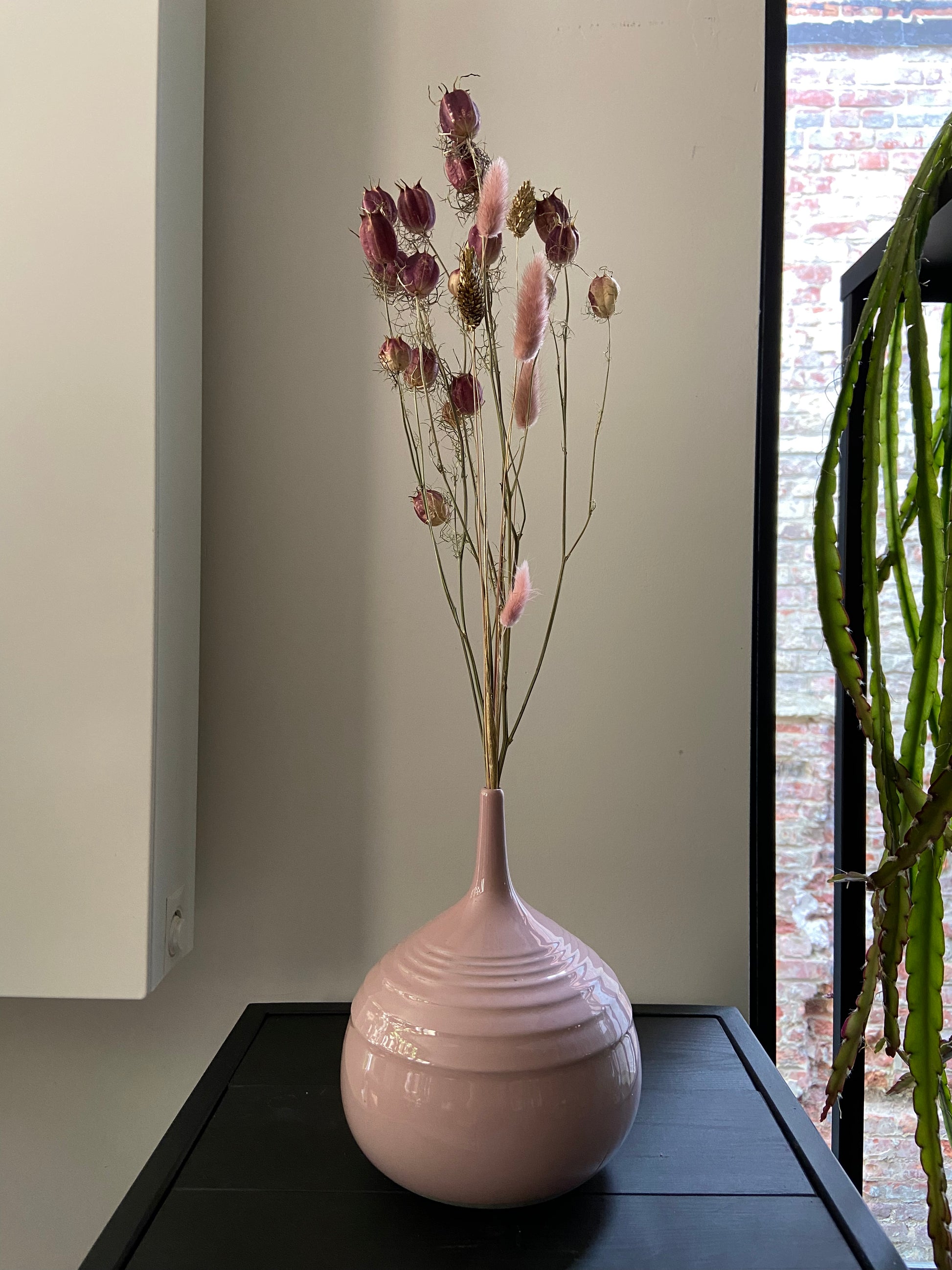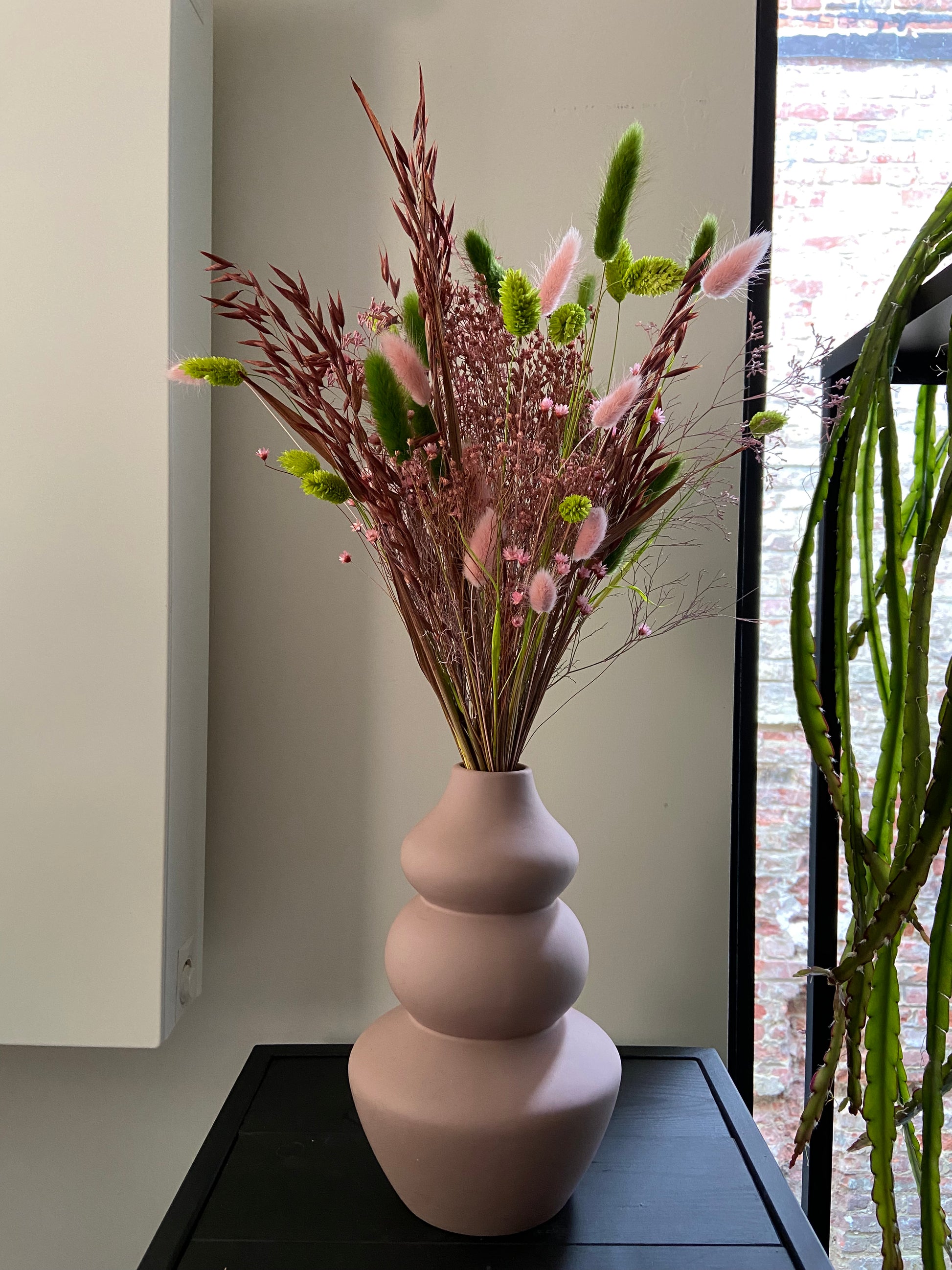 Ben je op zoek naar het perfecte Moederdagcadeau? Zoek dan niet verder! Dit geheel waarin we een prachtige roze vaas combineren met een bijpassend droogboeket zal zeker stralen.